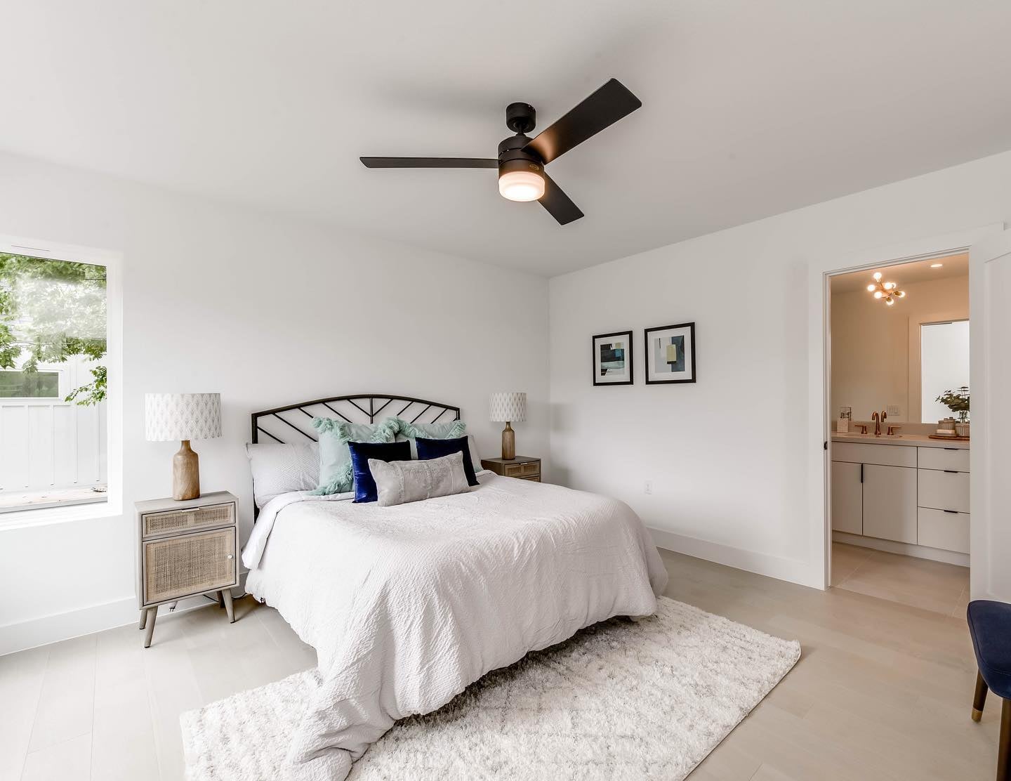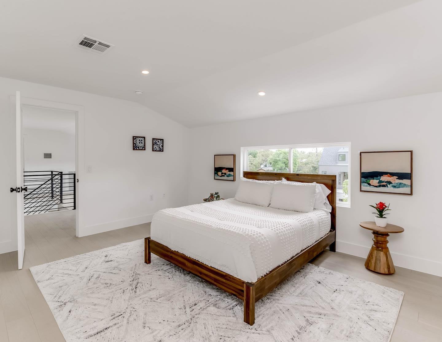 ภายในห้องนอนเองก็เป็นอีกมุมหนึ่งที่ยังคงเน้นบรรยากาศการตกแต่งที่มีความเรียบง่าย รวมไปถึงการเลือกใช้โทนสีขาวในการตกแต่งห้อง
