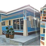 ลักษณะบ้านขนาดชั้นเดียว ฐานของบ้านยกขึ้นสูง 1 เมตร รูปทรงของบ้านออกแบบด้วยสไตล์โมเดิร์น ผนังภายนอกตกแต่งด้วยโทนสีขาว แซมด้วยโทนสีน้ำตาล ให้บรรยากาศที่อบอุ่นน่าอยู่ หลังคาของบ้านเป็นหลังคาเพิงหมาแหงนแบบแยกหน้าหลัง