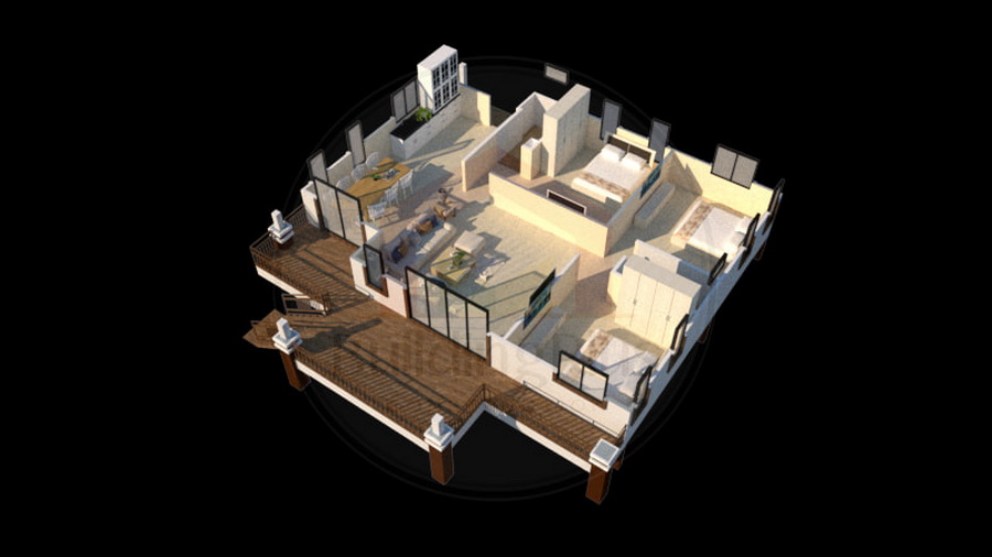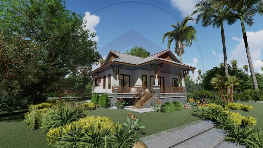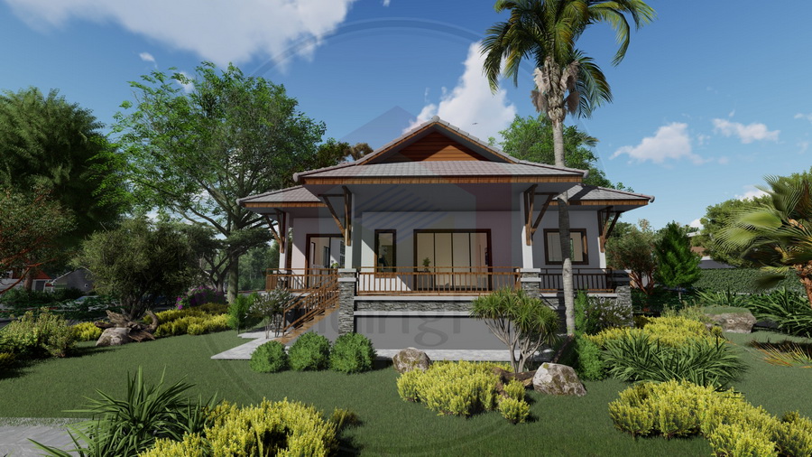 ลักษณะบ้านชั้นเดียว ฐานของบ้านถูกออกแบบยกสูงตามแบบฉบับบ้านไทยเดิม โครงสร้างพื้นฐานจะเป็นวัสดุและการดีไซน์แบบโมเดิร์น เพื่อให้มีความแข็งแรงและเข้ากับยุคสมัย รายละเอียดการออกแบบที่สะท้อนกลิ่นอายบ้านทรงไทย คือ ส่วนของงานหลังคาทรงมะนิลา พร้อมกับชายคากันแดดและฝน