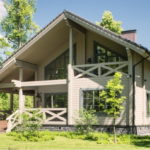 ลักษณะบ้านสองชั้นยกสูงจากพื้นเล็กน้อย หลังคาดูมีเอกลักษณ์ ผนังใช้อิฐสีขาวแต่โดยรอบในรูปแบบสไตล์ลอฟท์ โชว์ความดิบเท่ ด้านซ้ายเป็นโรงจอดรถแบบปิด จอดได้ถึงสองคัน เอาใจคนรักรถกันเลยทีเดียว