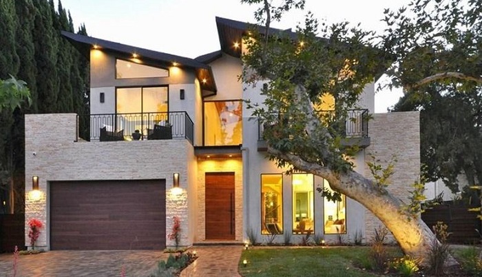 บ้านโครงสร้างคอนกรีต อกแบบรูปทรงกล่อง มีจังหวะลดทอนของตัวผนัง ดูสวยงามแบบสมัยใหม่ ช่องแสงจากกระจกชิ้นใหญ่ เน้นเปิดมุมมองสู่ภายนอก และนำเอาแสงธรรมชาติเข้ามาช่วยแก่ในบ้าน หลังคาเพิงหมาแหงน เท่ๆ ดูจะเป็นรูปทรงที่เหมาะมากับบ้านประเภทนี้