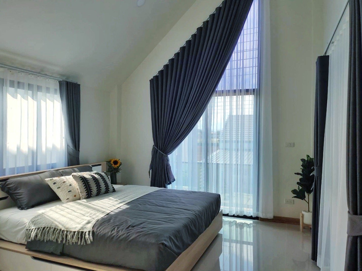 ภายในห้องนอนจะยังคงมีลักษณะห้องที่มีเพดานยกสูง พร้อมกับมีหน้าต่างบานใหญ่หลายมุม ทำให้ห้องมีบรรยากาศที่ผ่อนคลาย เหมาะกับการพักผ่อน