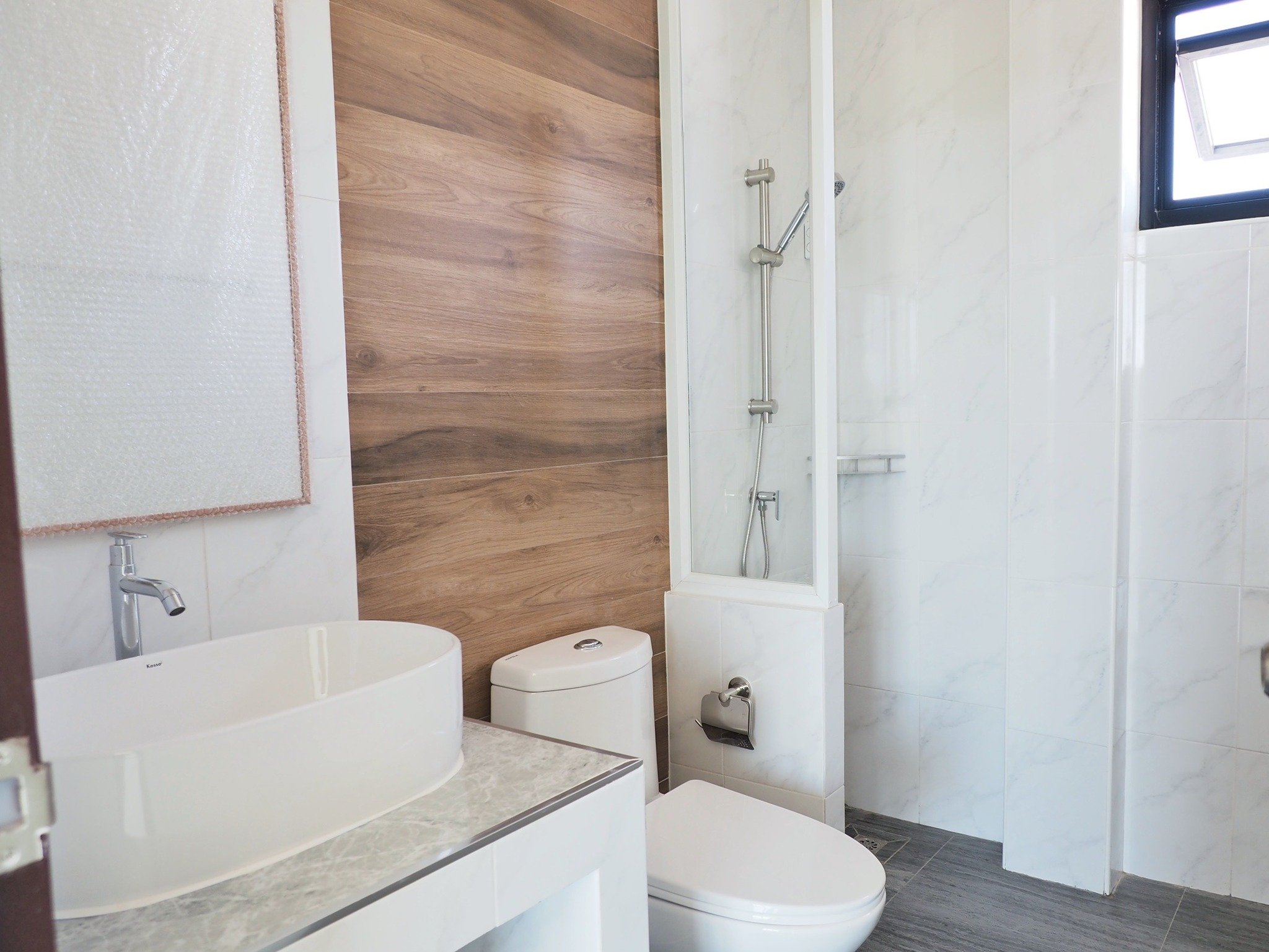 ในส่วนของห้องน้ำ เป็นห้องที่มีพื้นที่ใช้สอยพอสมควร โดยได้จัดวางองค์ประกอบใช้สอยเอาไว้ให้ใช้งานได้อย่างสะดวก