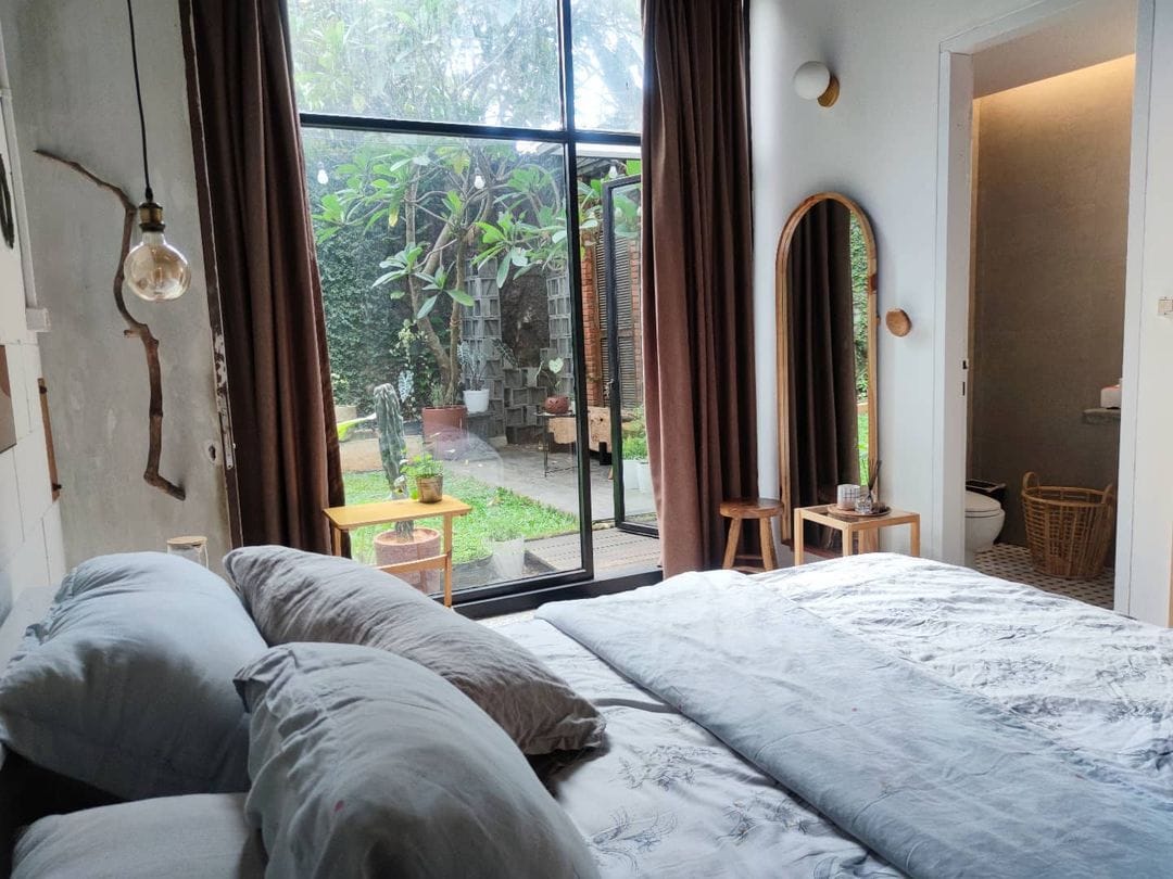ห้องนอนมีความพิเศษตรงที่การออกแบบด้านทางเข้าเป็นประตูและผนังกระจกใสที่ติดกับสวนหลังบ้าน จึงให้บรรยากาศที่สดชื่นสวยงามนั่นเอง