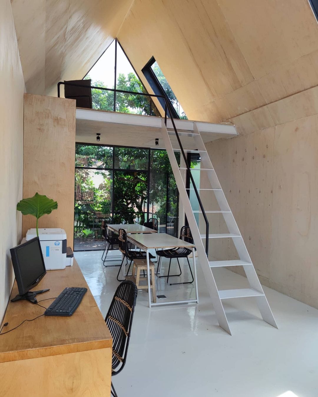 ส่วนที่เป็นหลังคาที่เราเห็นจากด้านนอกนั้น ด้านในจะเป็นชั้นลอยที่ออกแบบมาเป็นพิเศษ เป็นมุมสำหรับการพักผ่อนโดยเฉพาะ ซึ่งด้านล่างจะเป็นห้องอเนกประสงค์และห้องทำงาน