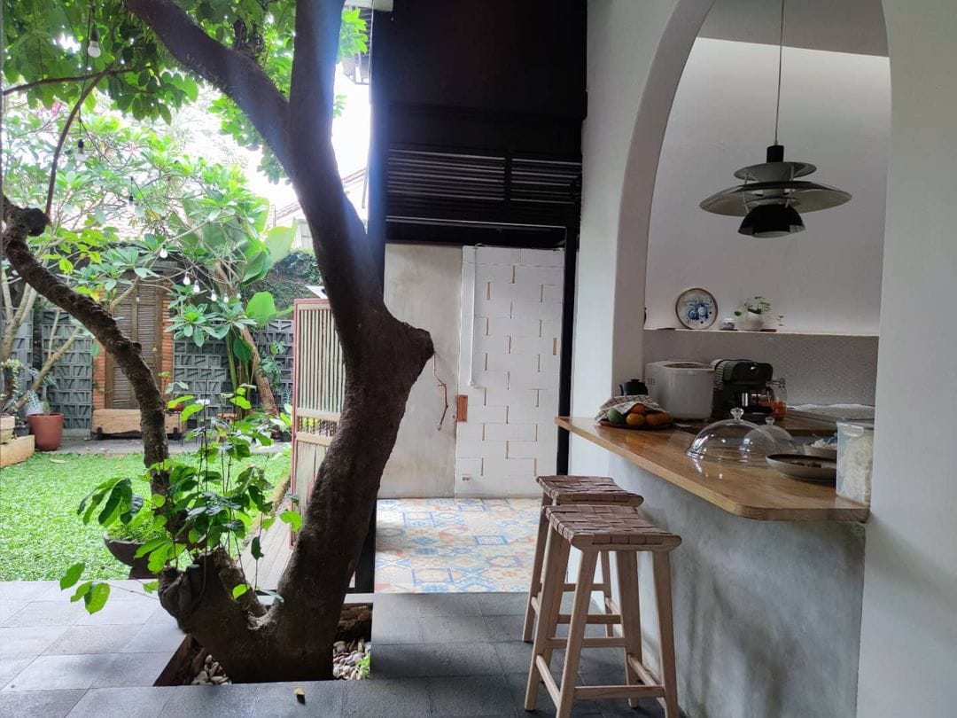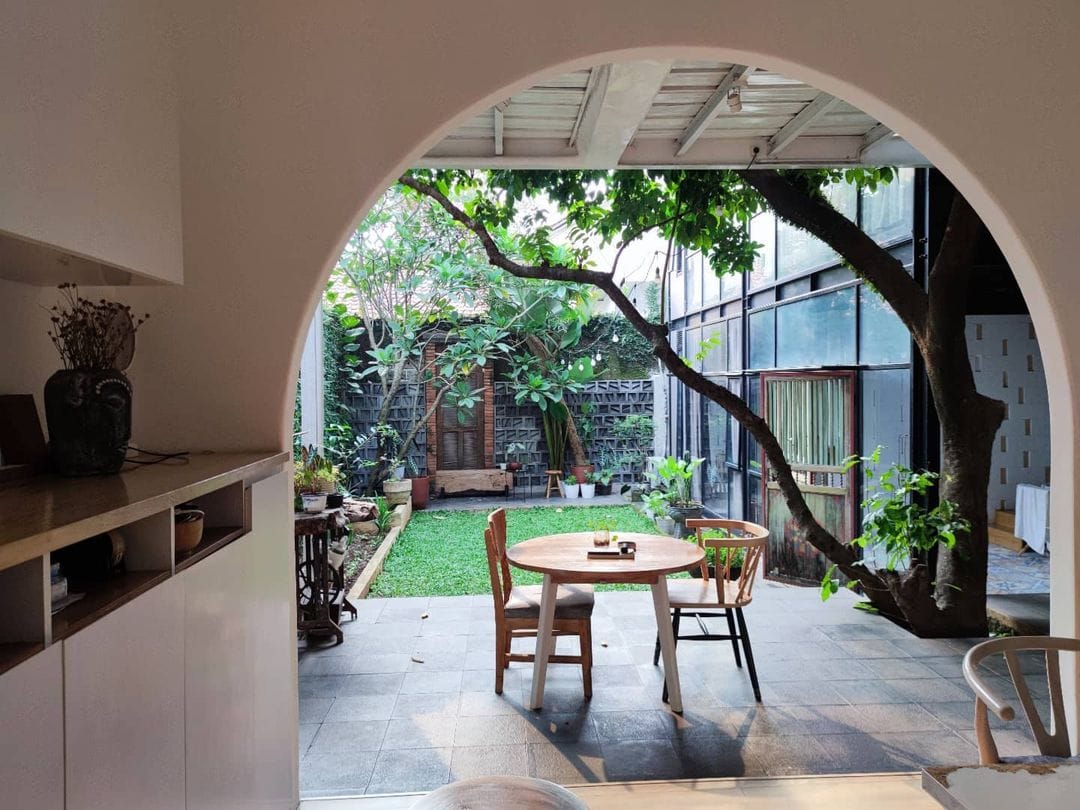 อีกจุดที่น่าสนใจของบ้าน คือสวนหลังบ้านขนาดเล็ก ที่แม้จะเล็กแต่ก็อัดแน่นไปด้วยความร่มรื่น รอบ ๆ บริเวณก็มีมุมให้นั่งพักผ่อนถูกจัดเอาไว้