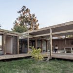 ตัวบ้านขนาดชั้นครึ่ง ฐานของบ้านถูกยกขึ้นสูง จึงมีพื้นที่ใต้ถุนโปร่งโล่ง ตัวบ้านมีดีไซน์ที่เรียบง่ายในแบบโมเดิร์น หลังคาเป็นแบบเพิงหมาแหงนเล่นระดับ ผนังภายนอกตกแต่งด้วยผนังปูนเปลือยแบบสวยดิบในกลิ่นอายแบบลอฟท์