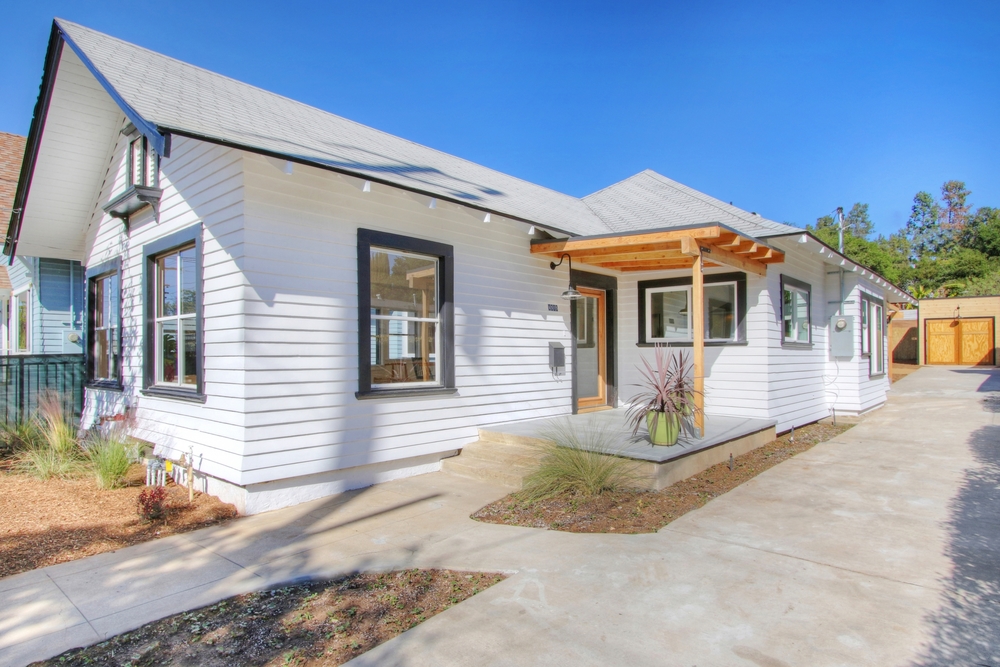 ตัวบ้านขนาดกลาง จึงใช้โครงสร้างคอนกรีต ผสมโครงสร้างไม้ ผนังขาวล้วนจากงานไม้ตีชิดทั้งหลัง คาดด้วยสีฟ้า ตกแต่งไว้เพียงน้อย เลือกใช้หลังคาทรงจั่ว ชายคาสั้น เสริมความน่ารักให้กับตัวบ้าน ได้ดีเยี่ยม