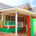 ลักษณะเป็นบ้านไม้ชั้นเดียว หลังคาทรงหน้าจั่วสีเข้ม ผนังถูกตกแต่งด้วยไม้ฝาขัดสีธรรมชาติให้ปล่อบไปตามกาลเวลา และทาสีขาวเรียบๆ แถมระเบียงบ้านด้านข้างปูพื้นด้วยไม้เต็มพื้นที่ แซมด้วยต้นไม้ในสวนเล็กน้อย ง่ายต่อการดูแลรักษา