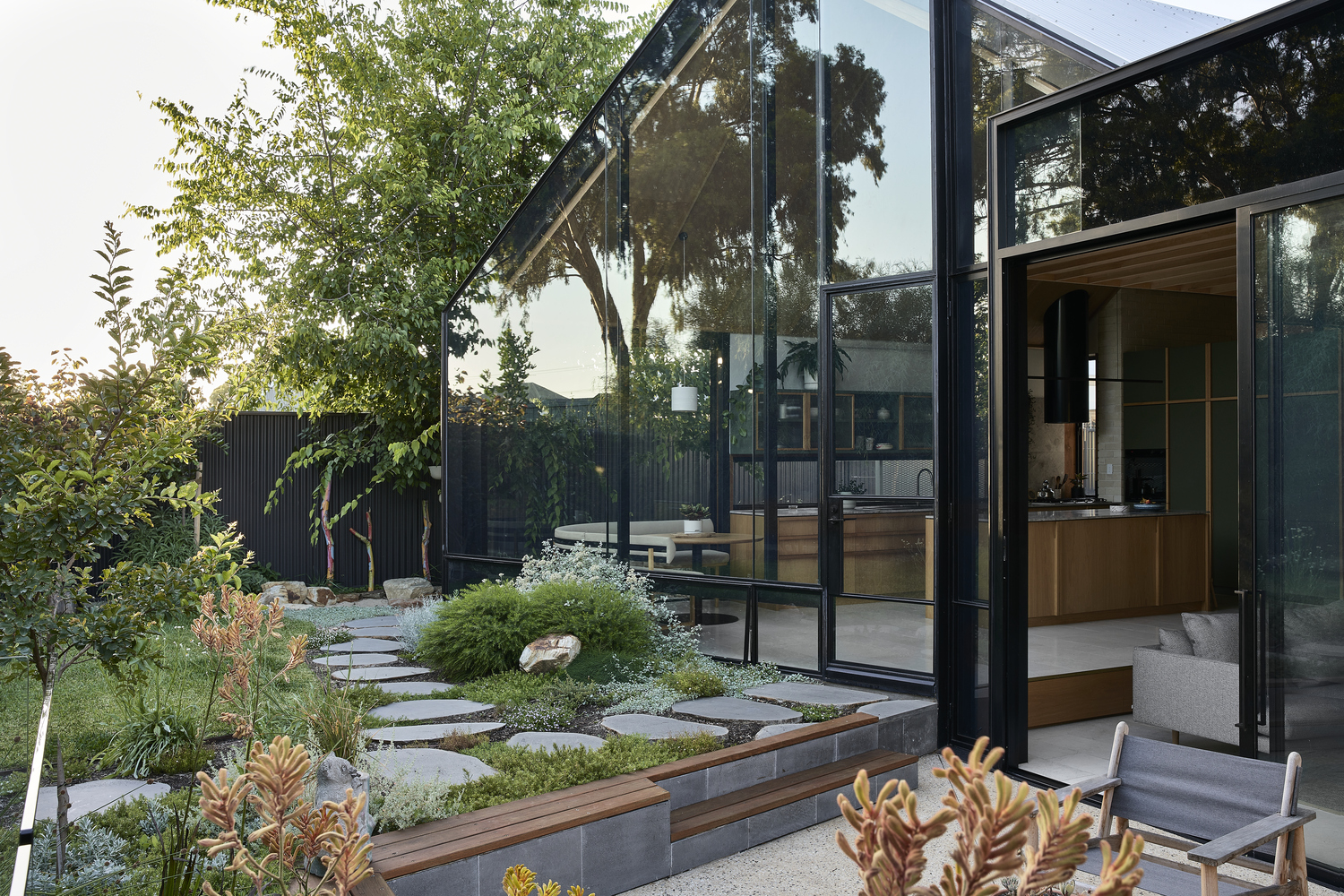 หลังบ้านจะมีการออกแบบให้ผนังเป็นแบบกระจกใสแบบเรือนกระจก เพื่อให้ผู้พักอาศัยสามารถสัมผัสกับสวนหลังบ้านได้อย่างใกล้ชิดนั่นเอง