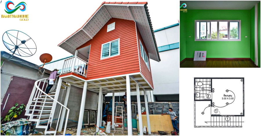 Moblie Home เป็นบ้านโครงเหล็กยกพื้นสูง ประกอบไปด้วย 1 ห้องนอน 1 ห้องน้ำ ใช้งบประมาณในการก่อสร้าง 400,000 บาท (ไม่รวมที่ดิน) ถ้าหากชาวเว็บท่านไหนสนใจ ก็สามารถสอบถามรายละเอียดการก่อสร้างเพิ่มเติมจากผู้รับเหมา ตามที่อยู่ด้านล่างนี้ได้เลยค่ะ