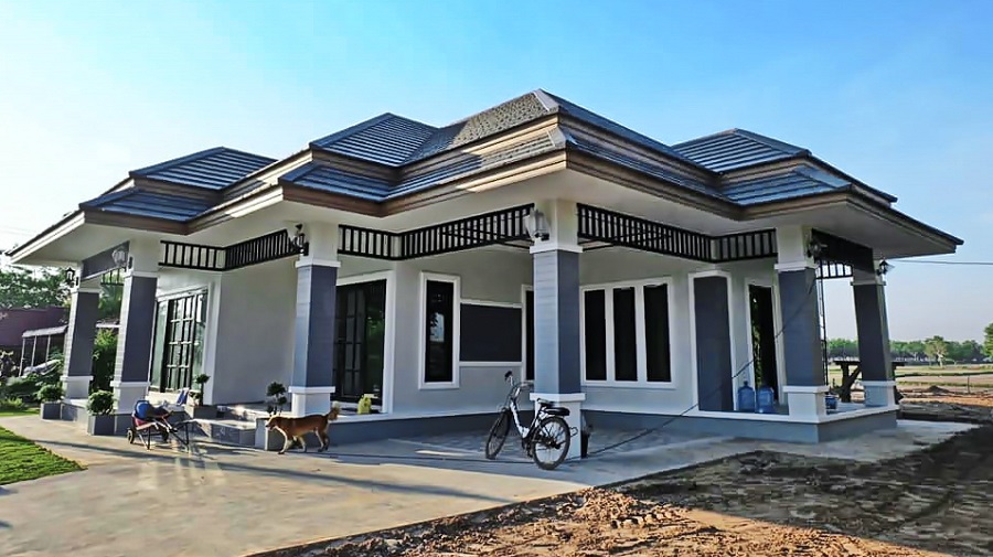 บ้านโมเดิร์นปั้นหยา 3 ห้องนอน 2 ห้องน้ำ พื้นที่ใช้สอย 150 ตร.ม. งบประมาณก่อสร้าง 1.9 ล้านบาท (จังหวัดศรีสะเกษ)
