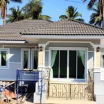 ลักษณะบ้านชั้นเดียว หลังคาทรงปั้นหยาสีเข้ม ผนังภายนอกใช้สีน้ำตายอ่อน ตัดกับสีเข้ม ม่ชานบ้านด้านหน้าสไหรับต้อนรับเพื่อบ้านที่มาเยือน เสาตกแต่งด้วยอิฐสีน้ำตาล พร้อมตกแต่งโคมไฟ เพื่อส่องสว่างยามค่ำคืน