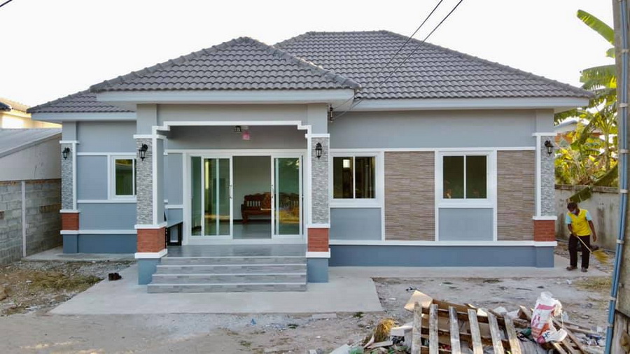 แบบบ้านสไตล์คอนเทมโพรารีหลังนี้ประกอบไปด้วย 3 ห้องนอน 2 ห้องน้ำ 1 ห้องครัว 1 ห้องรับแขก พร้อมเฉลียงนั่งเล่นหน้าบ้าน งบก่อสร้างอยู่ที่ประมาณ 950,000 บาท