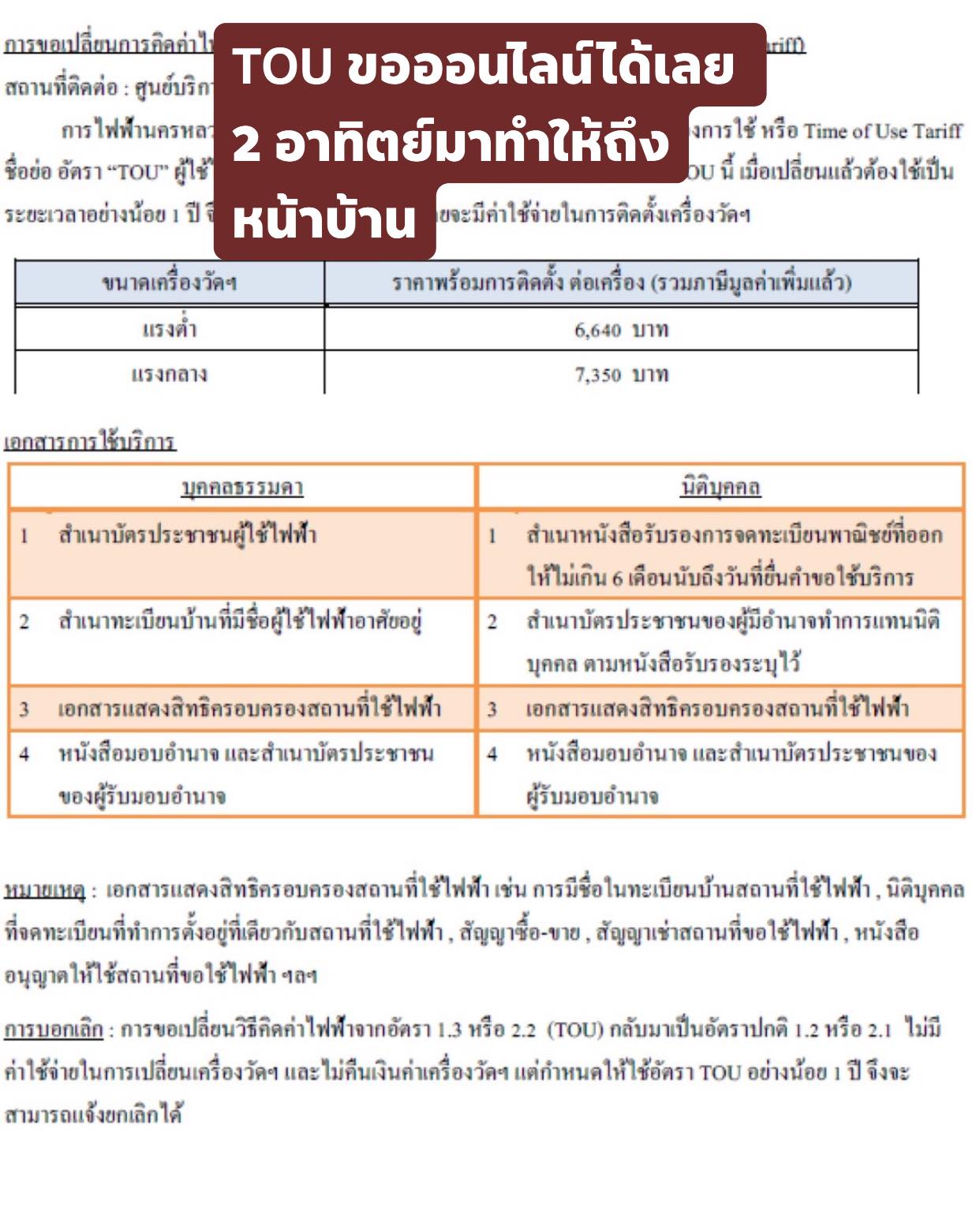 2. TOU meter ค่าไฟกลางวันจะแพง กลางคืนและวันหยุดจะถูกมาก เหมาะกับหนุ่มสาวออฟฟิศ ถ้ากลางวันไม่มีคนอยู่บ้าน เปลี่ยนแค่มิเตอร์พอ ลงทุน 7 พันเท่านั้น