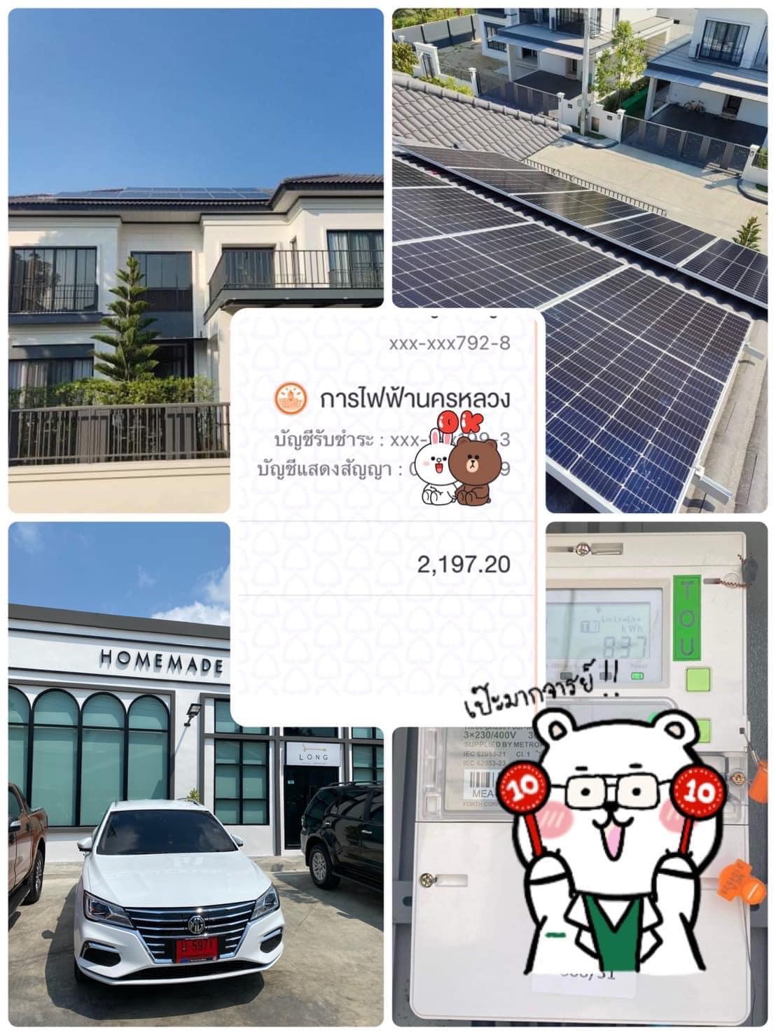 เช่นเดียวกันกับคุณ Warong Wanishkupalangkul ที่ได้ลงทุนไปกับ “โซล่าเซลล์ ระบบออนกริด” ราว ๆ 140,000 บาท ซึ่งใช้ไฟฟ้าไปกับระบบไฟฟ้าภายในบ้าน และรถยนต์ไฟฟ้า ทำให้เจ้าตัวประหยัดทั้งค่าไฟปกติ และค่าน้ำมันในแต่ละเดือนได้ร่วมหมื่นบาทเลย!