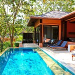 ตัวบ้านโทนสีขาว ผนังทุกด้านจะเป็นกระจกโปร่งใส มองเห็นองค์ประกอบภายในได้อย่างชัดเจน เสริมที่นั่งเล่นเล็กๆ บริเวณระเบียงบ้าน เนื่องจากเป็นบ้านริมทะเล จึงสร้างตัวบ้านให้ยกสูงขึ้นจากพื้นเล็กน้อย