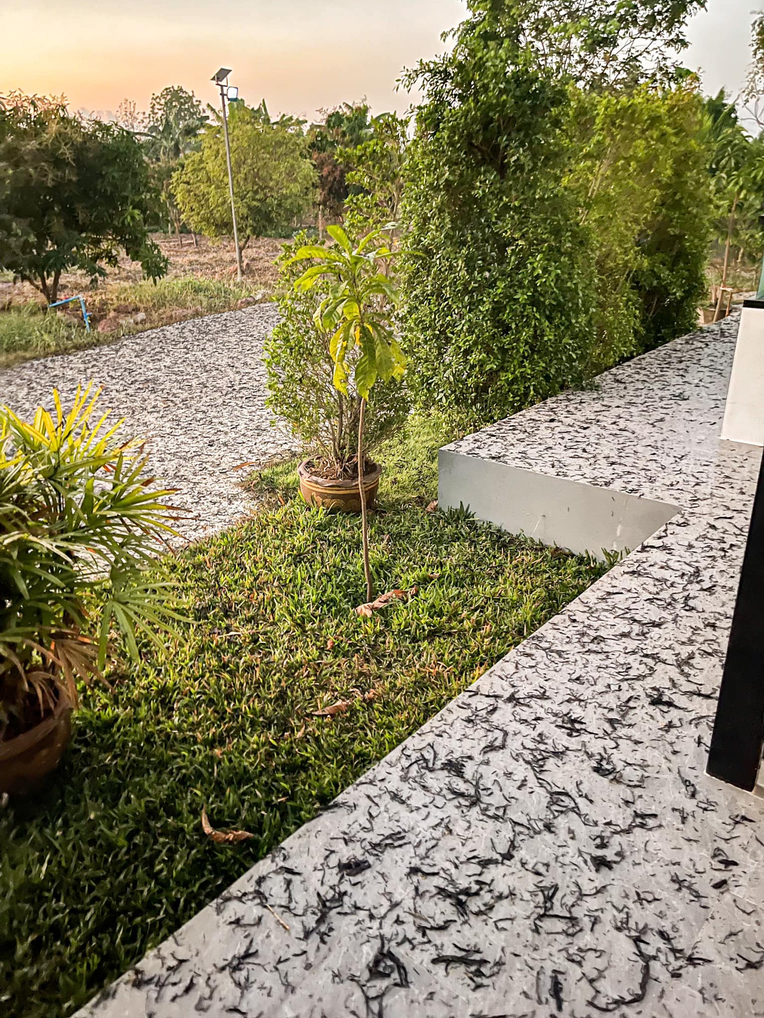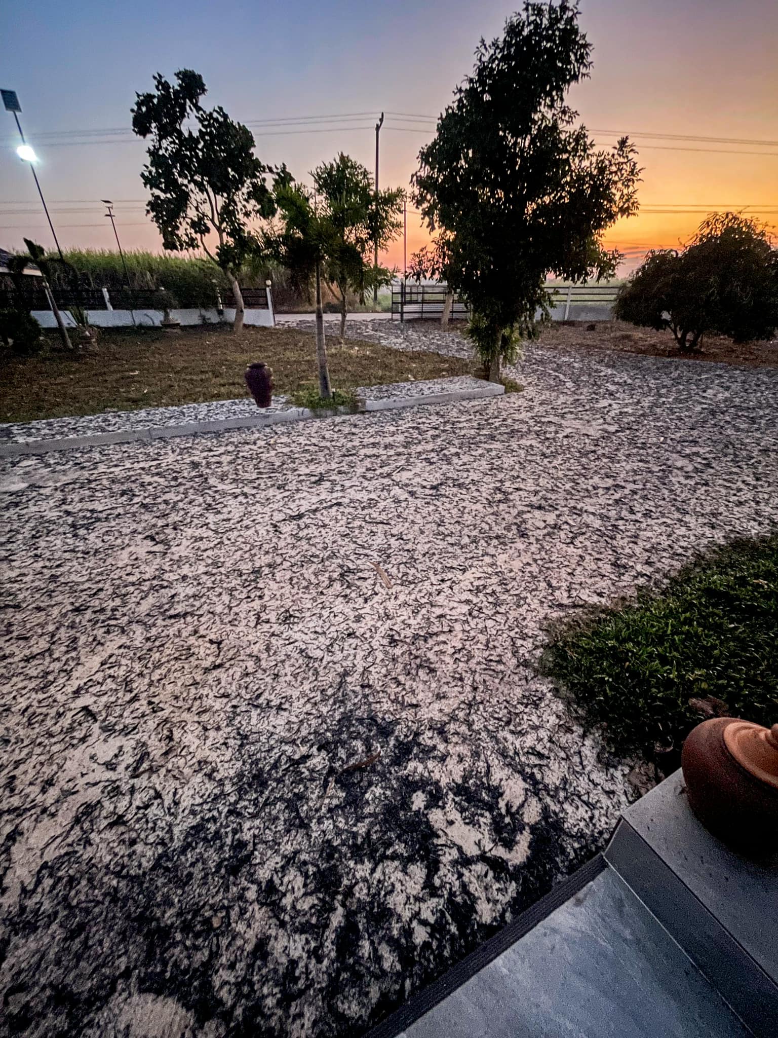 จะเห็นได้ว่าทั่วทั้งบริเวณบ้านของหนุ่มคนนี้ถูกปกคลุมไปด้วยเขม่าของอ้อยที่ถูกเผา