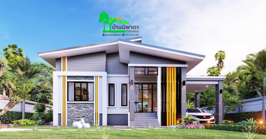 Read Moreแบบบ้านหน้ากว้างสไตล์โมเดิร์น ดีไซน์หลังคาทรงเพิงหมาแหงน 3 ห้องนอน 2 ห้องน้ำ