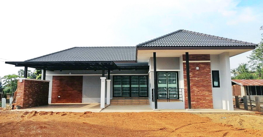 แบบชั้นเดียวยกพื้นสูงสไตล์คอนเทมโพรารี 3 ห้องนอน 2 ห้องน้ำ พร้อมทางลาดเพื่อผู้สูงอายุ พื้นที่ 120 ตร.ม.