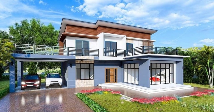 บ้านสองชั้นสไตล์โมเดิร์นลอฟท์ ออกแบบพร้อมดาดฟ้าและใต้ถุนโล่ง 3 ห้องนอน 2 ห้องน้ำ