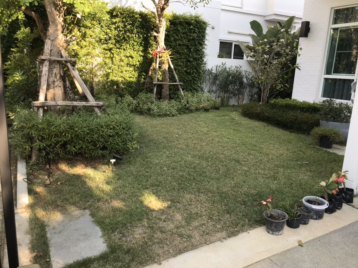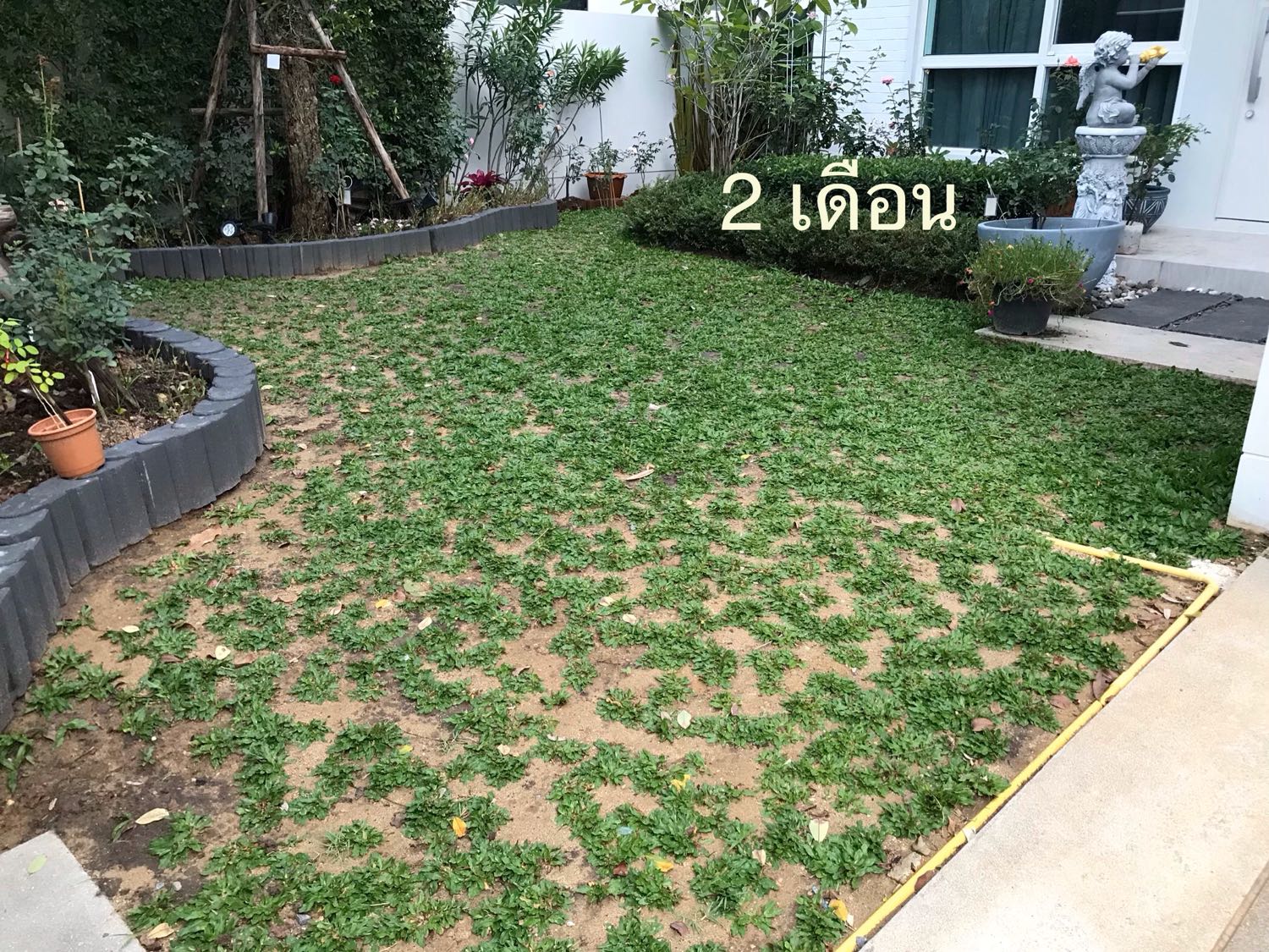 เริ่มจากซื้อบ้านเมื่อ 2 ปีที่แล้ว ตอนแรกก็ขยันตัดหญ้า กวาดกันเอง 2 คน พอผ่านไปซักปีนึง เริ่มเหนื่อย ขี้เกียจ เลยลองหาหญ้าที่โตช้า นาน ๆ ตัดที