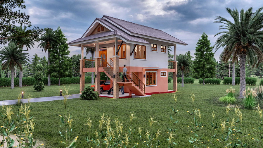 พื้นที่พักอาศัยหลักจะอยู่บริเวณชั้นสอง ในขณะที่บริเวณชั้นล่างนั้น จะมีลักษณะเป็นใต้ถุนยกสูง จึงสามารถใช้เป็นที่จอดรถ หรือทำกิจกรรมของครอบครัวได้อีกด้วย