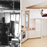 ตัวเล่นระดับแบ่งพื้นที่ใช้สอยออกเป็นสองส่วน ระดับบนจะเป็นมุมทำครัวและมุมรับประทานอาหาร ส่วนระดับล่างจะจัดวางโซฟาไม้สานไว้บริเวณเตาผิง เป็นมุมรับแขกและเป็นอีกหนึ่งมุมพักผ่อนรับไออุ่นจากเตาผิงในช่วงหน้าหนาว