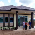 ลักษณะเป็นแบบบ้านชั้นครึ่ง ที่มาพร้อมหลังคาเพิงหมาแหงน โดยผนังเป็นไม้ฝาขัดเงาสวย สีธรรมชาติ ผสมผสานการตกแต่งด้วยไม้สีดำ และกระจกใสบานใหญ่ ให้บ้านดูโปร่งสบาย ไม่อึดอัด