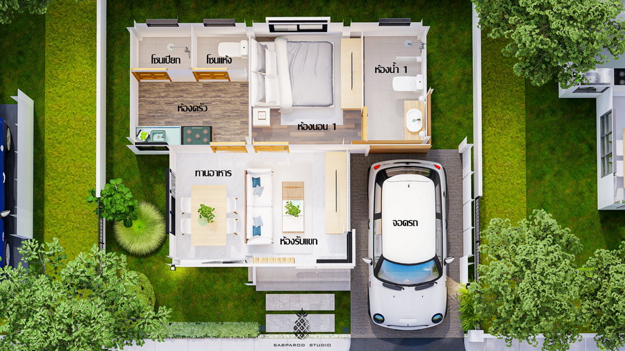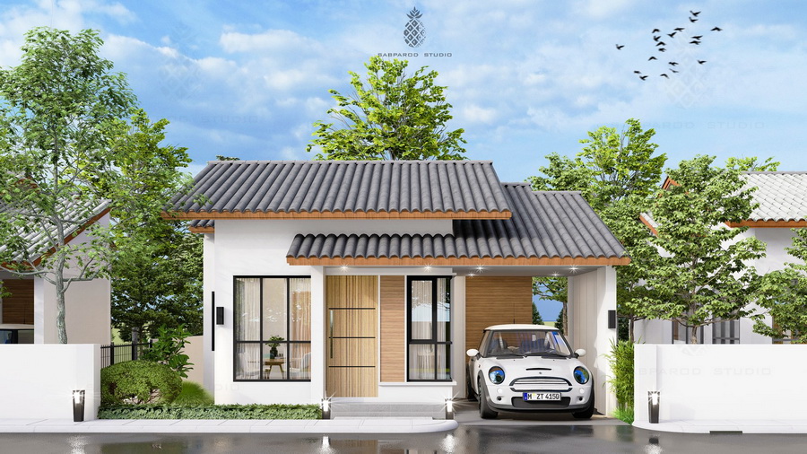 แบบบ้านที่ให้กลิ่นอายแบบบ้านสไตล์ญี่ปุ่น ผลงานการออกแบบโดยทีมสถาปนิกจาก Sabparod Studio เป็นบ้านขนาดเล็กที่มีรายละเอียดการออกแบบและตกแต่งที่เรียบง่าย เหมาะกับคนหนุ่มสาวยุคใหม่ รวมไปถึงยังเหมาะกับครอบครัวขนาดเล็กอีกด้วย