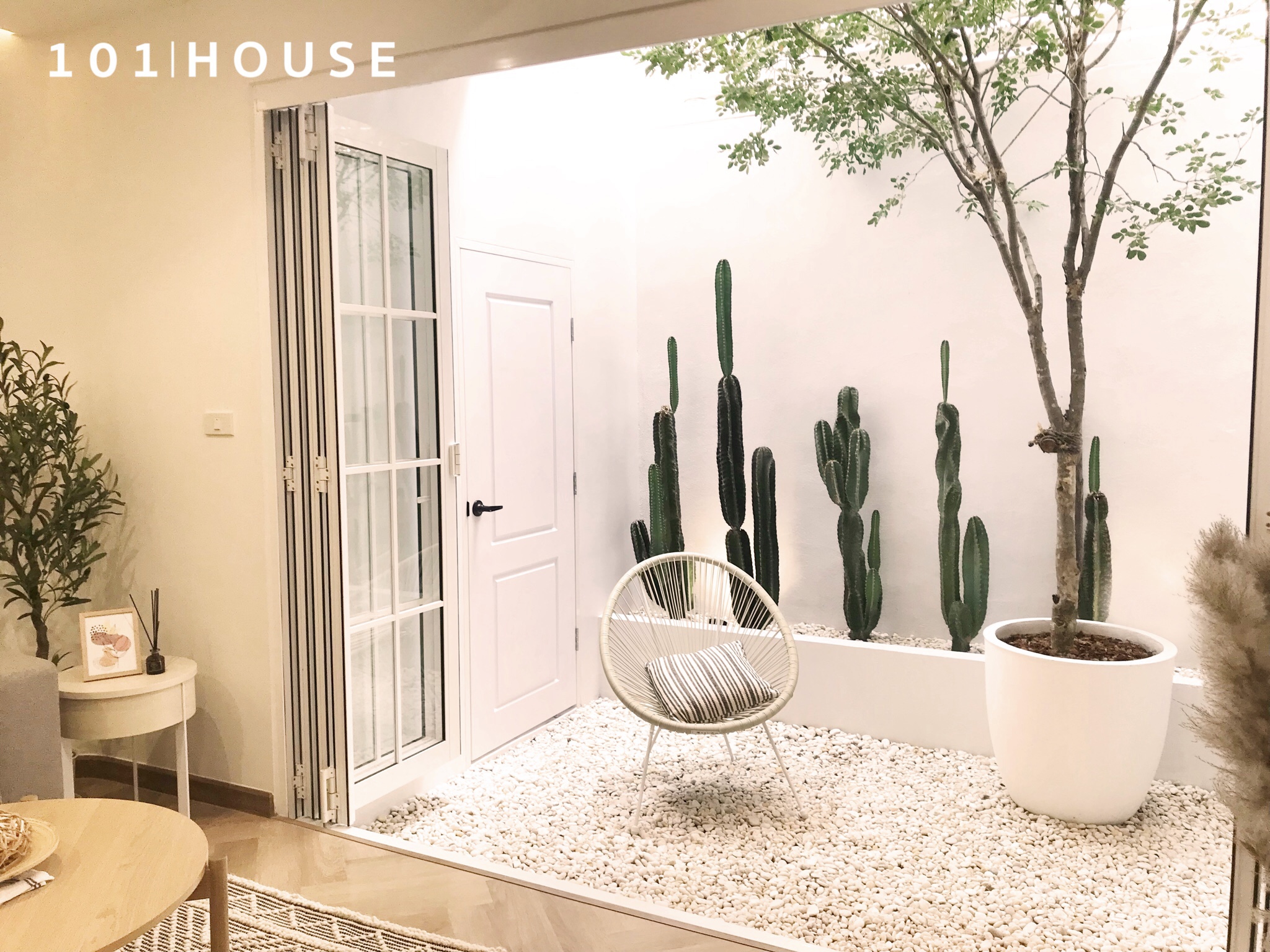 private backyard แนวคิดที่เปลี่ยนพื้นที่หลังบ้านจากเดิมที่เป็นครัว ให้เป็นมุมธรรมชาตินอกบ้าน แต่ก็ยังสามารถเชื่อมกับภายในห้องนั่งเล่นดูทีวีได้
