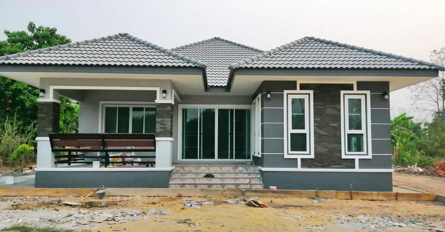 บ้านชั้นเดียวทรงแฝด สไตล์คอนเทมโพรารีหลังนี้ประกอบไปด้วย 3 ห้องนอน 2 ห้องน้ำ 1 ห้องครัว พร้อมโถงและห้องรับแขก พื้นที่ใช้สอยทั้งหมดรวม 137 ตารางเมตร งบก่อสร้างอยู่ที่ประมาณ 1.37 ล้านบาท