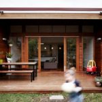 ลักษณะเป็นแบบบ้านลองชั้น ที่มาพร้อมหลังคาเพิงหมาแหงน กรุส่วนล่างของหลังคาด้วยไม้เทียมสีเข้ม ผนังเป็นลวดลายแบบปูนเปลือยขัดมัน สะท้อนความดิบ โชว์ความเป็นธรรมชาติ พร้อมการใช้ประตูหน้าต่างกระจก ที่ดูทันสมัยและเพิ่มบรรยากาศในบ้านให้โปร่งสบาย