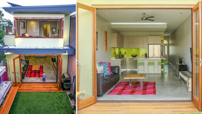 บ้านกลางเมือง มีหน้าบ้านติดกับแนวถนน ตกแต่งให้มีต้นไม้เล็กน้อย ก่อนถึงตัวบ้านที่ยกพื้นสูงพองาม ออกแบบให้หน้าบ้านนั้น เป็นสไตล์วิคตอเรีย แบบชั้นเดียว โดยมีพื้นที่ลาดเอียงในด้านหลัง จึงออกแบบให้มีสองชั้นในตัว ที่ตกแต่งในสไตล์โมเดิร์น