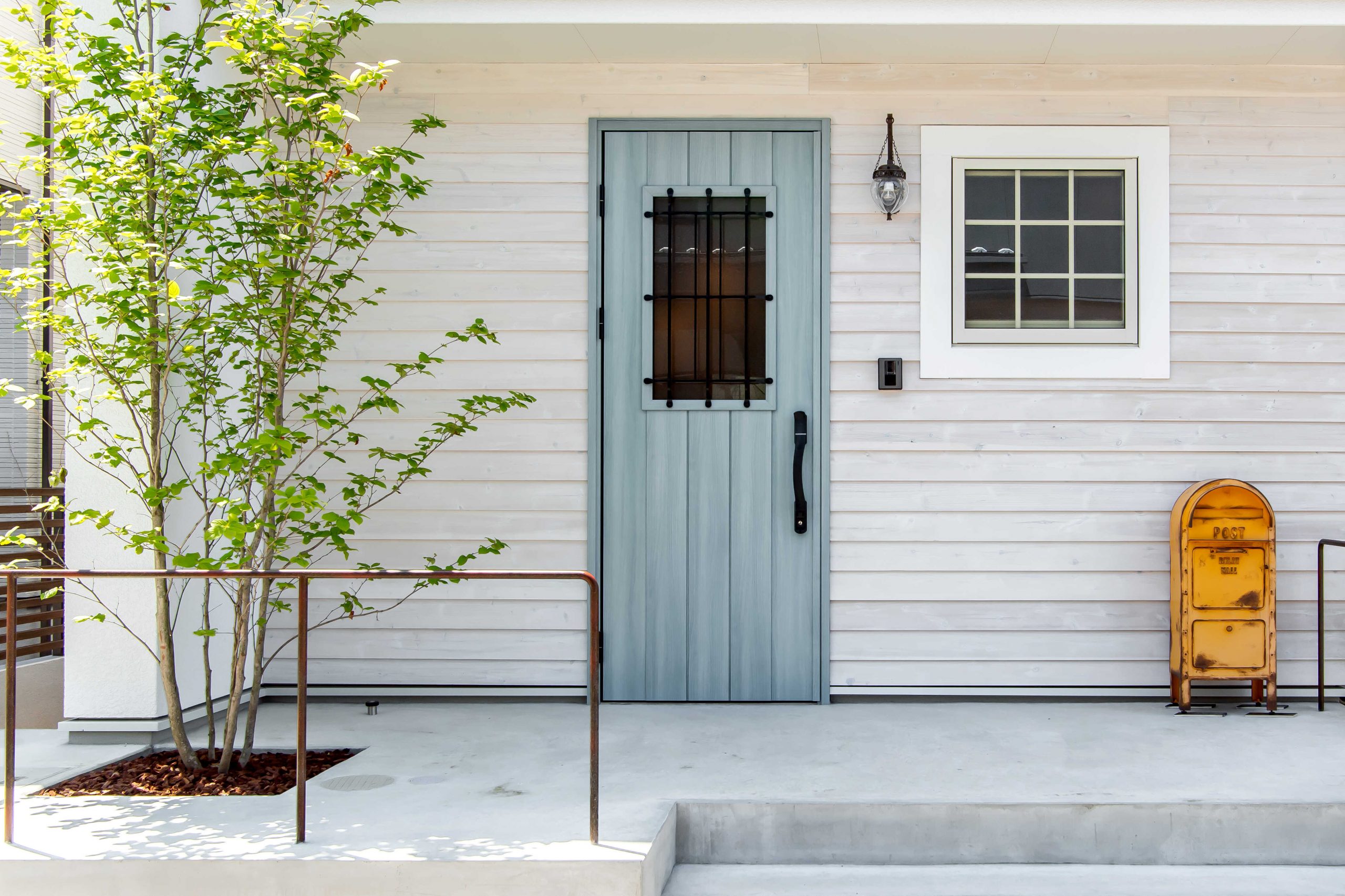 ที่หน้าบ้าน เราจะเห็นดีเทลการตกแต่งผนังที่เป็นผนังไม้ บานประตูจะให้งานดีไซน์ที่มีความเป็นยุโรป ทำให้บ้านมีเสน่ห์ตั้งแต่ทางเข้ากันเลยทีเดียว