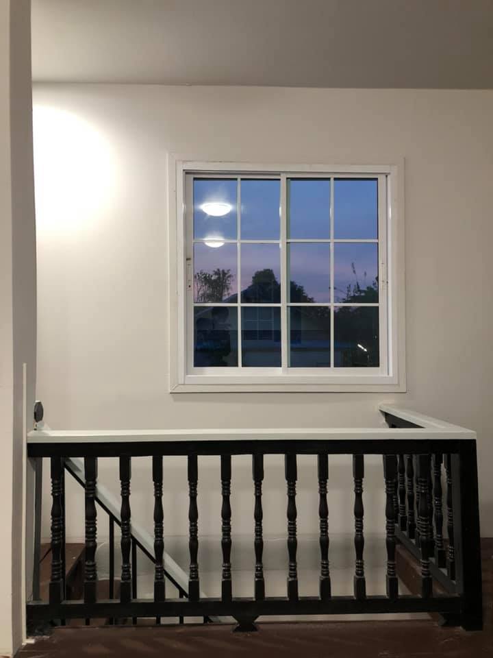 นอกจากนี้ยังคงมีองค์ประกอบจากบ้านหลังเก่าอยู่ด้วย อย่างเช่นราวบันไดไม้นี้ที่ยังคงใช้แบบเดิม แต่มีการทาสีและเพิ่มความแข็งแรงขึ้น