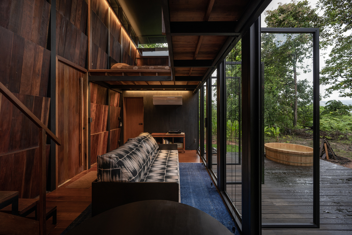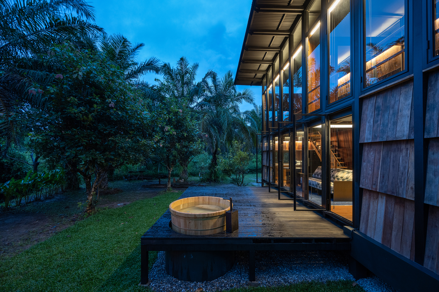 เจ้าของบ้านและสถาปนิกมีแนวคิดที่จะออกแบบอาคารหลังนี้ด้วยวัสดุอย่างไม้ เพราะเจ้าของเป็นผู้ผลิตเฟอร์นิเจอร์ไม้อยู่แล้ว จึงร่วมกันออกแบบอาคารหลังนี้ที่ตัวโครงสร้างจะเป็นเหล็ก ในส่วนของผนังก็จะติดตั้งไม้ที่หาได้ในท้องถิ่น