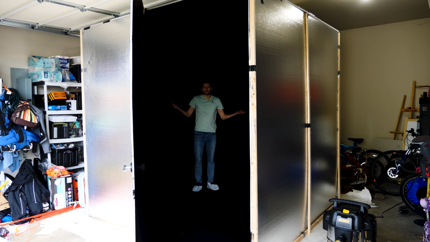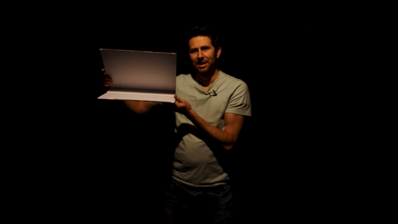 หลังจากนั้นเขาได้ทำการทดลองอีกหนึ่งอย่างก็คือการติดตั้งหลอดไฟให้แสงสว่างภายในห้องสีดำสนิท ซึ่งเมื่อเปิดไฟแล้วจะทำให้เห็นได้ว่า แสงที่ตกกระทบนั้นแทบจะไม่สะท้อนอยู่บนกำแพงหรือพื้นเลย ทุกอย่างรอบตัวเขาดำสนิท
