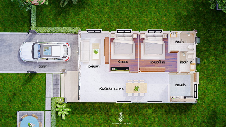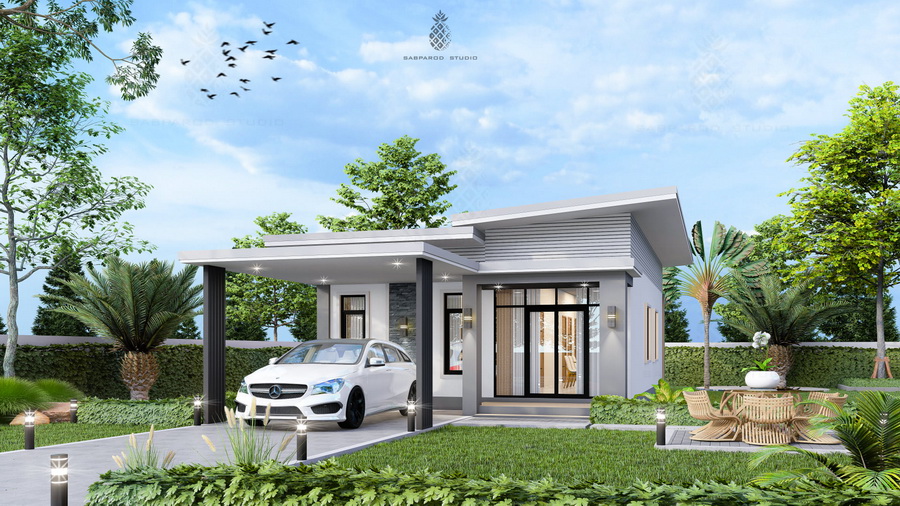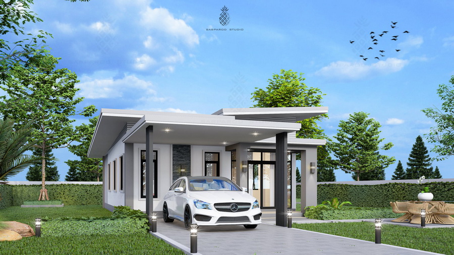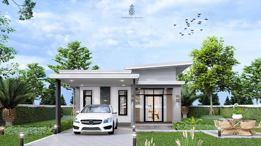 แบบบ้านสไตล์โมเดิร์น ผลงานการออกแบบโดย Sabparod Studio บ้านขนาดพอเหมาะสำหรับการพักอาศัย 2 – 4 คน มาพร้อมการออกแบบที่ทันสมัย มีพื้นที่ใช้สอยที่เพียงพอสำหรับทุกการใช้งาน เป็นแบบบ้านที่เหมาะสำหรับคนยุคใหม่โดยเฉพาะ