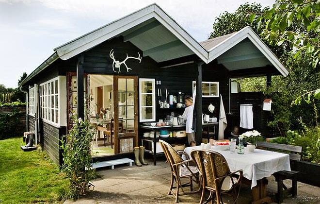 วันนี้ในบ้านจะพาไปชมไอเดียบ้านหลังหนึ่งในประเทศเดนมาร์ก ภายนอกออกแบบเป็นกระท่อมไม้ชั้นเดียวสีดำ ตัดเส้นขอบด้วยสีขาวดูโดดเด่นสะดุดตา พร้อมกับหลังคาหน้าจั่วเรียงต่อกัน ต่อออกมาข้างหน้าเล็กน้อย
