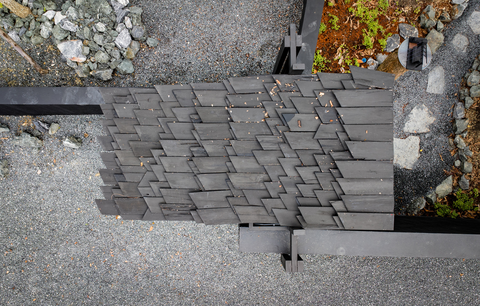 แต่ทางทีมออกแบบอย่างสร้าง Housescape Design Lab เค้าต้องการสนับสนุนอาชีพชุมชนด้วย จึงใช้วัสดุที่ชุมชนผลิตแทน เช่น หลังคา อันนี้เป็นงานแฮนด์คราฟต์นะ