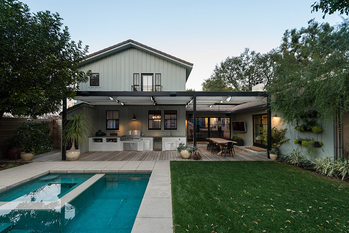 ภายนอกเราจะยังคงเห็นความดั้งเดิมอยู่ รายล้อมไปด้วยพื้นที่สวนอันดูร่มรื่น แต่จุดเด่นจะอยู่ตรงชานบ้านด้านหลัง เป็นมุมน่งเล่นพักผ่อนที่โล่งสบาย พร้อมกับสระว่ายน้ำและสนามหญ้าให้ใช้งานเต็มที่