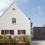 ด้านหน้าที่ติดถนน จะดูคล้ายกับบ้านธรรมดาทั่วไป แต่ใช้กระจกบานใหญ่แทนผนังชั้นบน แล้วอำพรางตาด้วยลายสานเป็นรูปตาข่าย ช่วยกรองแสงตอนกลางวัน และสร้างความเป็นส่วนตัวยามกลางคืน