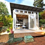 ส่วนฝั่งตัวอาคารนั้น จะตกแต่งภายนอกและภายในด้วยไม้ ออกแบบอย่างเรียบง่ายและทันสมัย เน้นการใช้งานในรูปแบบคอมแพ็คที่สามารถใช้ได้สารพัดประโยชน์เลยทีเดียว แบ่งเป็นพื้นที่ใช้งานส่วนรวมด้านล่าง และห้องนอนที่ชั้นบน