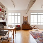 เข้าไปด้านในจะพบกับการตกแต่งที่ดึงดูดสายตา ผลงานออกแบบสไตล์โมเดิร์นที่เน้นสีขาวเป็นสีหลัก ตัดกับสีน้ำตาลของพื้นไม้ได้อย่างลงตัว เฟอร์นิเจอร์เกือบทุกชิ้นตั้งเข้าชิดผนังและมุมห้อง ทำให้พื้นที่ตรงกลางกว้างขึ้น