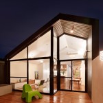 ตัวบ้านตั้งอยู่ริมถนนบนพื้นที่หน้าผาซึ่งมีที่ดินอยู่น้อย โดยด้านบ้านหลังยังยื่นพ้นเนินดินออกไปอีกด้วย ภายนอกทำจากโลหะเป็นบ้านทรงสี่เหลี่ยมขนาดเล็ก 2 ชั้น ซึ่งมีโรงจอดรถได้ 1 คัน ตกแต่งเป็นสีเรียบๆ