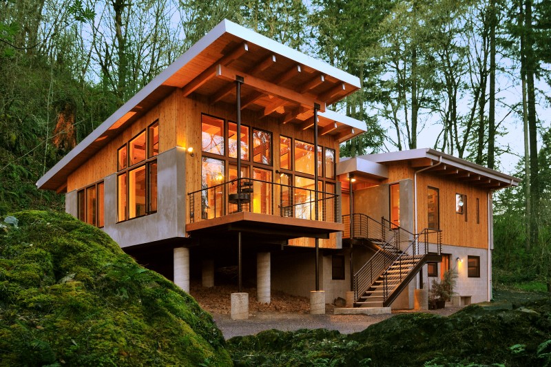 คราวนี้เราพามาดูแบบบ้านสไตล์ธรรมชาติ ซึ่งออกแบบตกแต่งแนวโมเดิร์นได้อย่างทันสมัย ตัวบ้านสองชั้นแบ่งออกเป็นสองฝั่ง หลังคาแบบเพิงหมาแหงนที่หันคนละทิศทางกันช่วยเพิ่มความโดดเด่นในการออกแบบอย่างมาก
