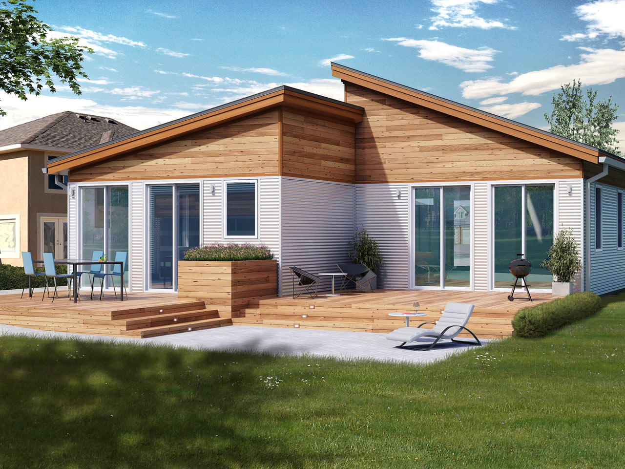 นอกจากการสร้างความสุขภายในบ้านแล้ว ยังคำนึงถึงความสุขนอกบ้าน ด้วยพื้นที่นั่งเล่นพักผ่อนในชานด้านนอก เติมเต็มให้ครบลงตัวทุกรูปแบบชีวิต ในงบที่ผมคิดว่าน่าจะอยู่ราวๆ 2 ล้านต้นๆ ก็คงพอไหวเลยล่ะครับ….