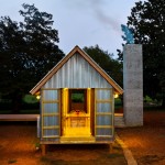 รูปแบบบ้านไม้สองชั้นทรงกระท่อม ออกแบบอย่างเรียบง่ายมาก โดยส่วนหน้าเป็นทรงหลังคาหน้าจั่ว โครงสร้างบ้านเป็นลักษณะรูปตัวแอล โดยใช้สีแดงให้ดูโดดเด่นตัดกับพื้นที่สีเขียวที่รายล้อม มีสนามหญ้าไว้เป็นที่นั่งพักผ่อนและลูกๆเด็กๆได้วิ่งเล่น