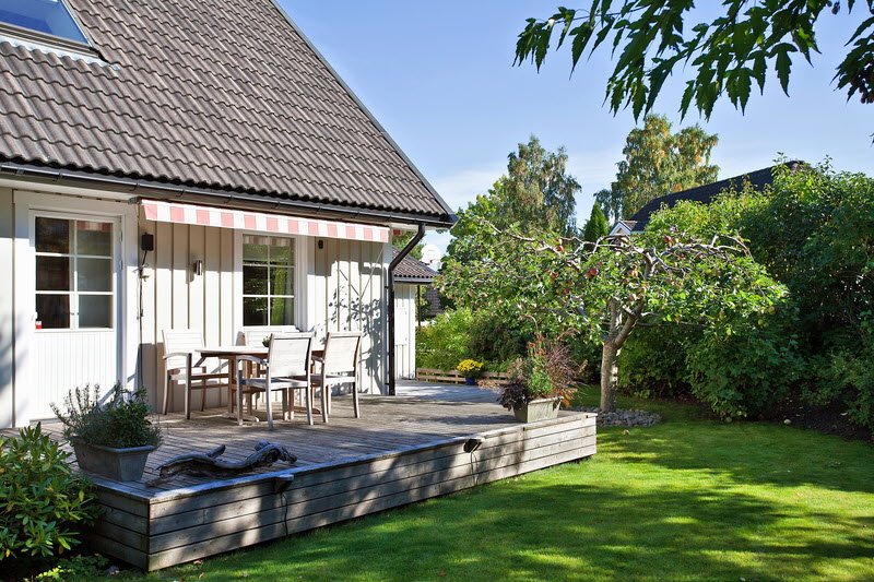 ตัวบ้านไม้สองชั้น ทาสีขาวตัดกับบรรยากาศโดยรอบอย่างโดดเด่น หลังคากระเบื้องสีเทาทรงสูง ล้อมรอบด้วยระเบียงเป็นพื้นที่นั่งพักผ่อน ไว้ทอดสายตามองสวนสวยๆในยามเช้าหรือยามเย็น เป็นความสุขอีกรูปแบบหนึ่ง